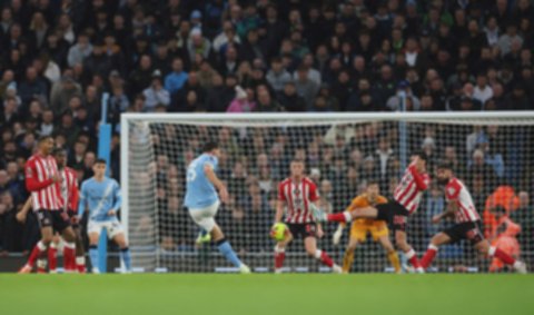 Man City bikin gol di menit ke-31. Sepakan keras Ruben Dias dari luar kotak penalti bersarang di gawang Sunderland.